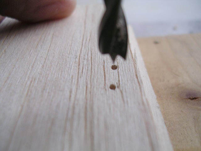 2.) Mit Holzbohrer (6 mm) Löcher bohren