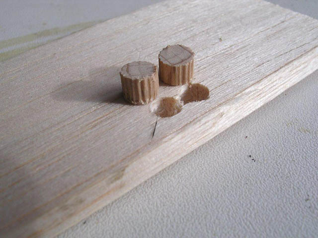 3.) Dübelstücke zuschneiden und einleimen