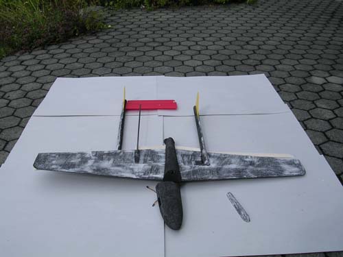 kam links, neben dem Leitwerkträger, zu liegen. Nachdem alle Teile zusammengeklebt